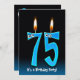 Aqua and blue gradient background with eyeballs on candles for 75th Birthday party invitation.