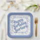 75th Birthday Party Number Pattern Blue White Paper Plate