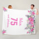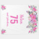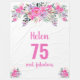 Elegant design for a 75th birthday party with a pink "75 and fabulous" and a scripted name embellished by a feminine watercolor flowers on a white background. Customize age, text, name and background colour.