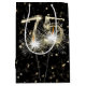 75th Birthday Sparklers on Black With Stars Medium Gift Bag