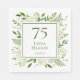 These white hydrangea 75th birthday party/brunch luncheon napkins are whimsical and stunning! With their watercolor multi-hued white hydrangeas, wispy natural greenery they are perfect for celebrating your wife, mom, sister, aunt, friend, grandmother, great grandmother. By selecting Personalize this template and typing in your information you can see your gorgeous napkins in seconds! They'll be fabulous on your bar, buffet, and tables.