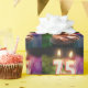 Birthday cake with candles wrapping paper. The candles are made up of the number 75, for a 75th birthday.