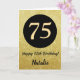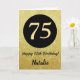 75th Happy Birthday Black and Gold Glitter Card with personalized name. For further customization, please click the "Customize it" button and use our design tool to modify this template.