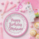 This over-the-hill design has a pink and white random number pattern with a pink milestone number 75 repeated in varied sizes and angles. There is a white circle in the centre for your text and pink-and-white rings around the rim.
