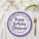 75th Party Random Number Pattern Purple/White Paper Plate