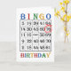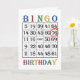 76th Birthday card. Say Happy Birthday to a bingo player with a bingo card. The age is circled in red. A bingo crazy player will get a huge kick out of this card! Copyright Norma Cornes.