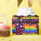 This fun and cheerful birthday wrapping paper design features a large number “76” with a rainbow spectrum gradient inspired pattern, along with the message “Happy 76th Birthday,”, and a personalized name. The background features a pattern of red, purple, and pink heart shapes of various sizes. Wrapping paper like this might be used when wrapping gifts being given to somebody in celebration of their 76th birthday. [~Z0000549]