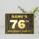 The front of this bold seventy-sixth birthday celebration/party foil invitation card features an editable name, a large number “76th”, the message “BIRTHDAY PARTY!”, and a border, all in foil. The background of the front features a rustic, yet sophisticated, faux wood grain look inspired pattern. The back features personalized details about the event, such as the date, time, place, and any other relevant information. Customizable invitations like these might be used to invite attendees to a birthday party being held to honour somebody’s 76th birthday. [~Z0000598]