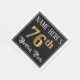 This fancy and ornate birthday paper napkin design features an editable name and the message “76th Birthday Party”. The large number “76th” has an imitation/faux gold-inspired colouring pattern, the words “Birthday Party” are in opulent script-style text, and the background is coloured black by default (although it can be customized). Luxurious, opulent paper napkins like this might be useful at a birthday celebration/party being held in celebration of somebody’s seventy sixth birthday. [~Z0000565]