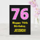 76th Birthday: Pink Stripes and Hearts "76" + Name Card