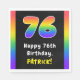 This upbeat and eye-catching birthday themed paper napkin design features a big number “76“ having a colorful rainbow spectrum inspired gradient pattern, along with the message “Happy 76th Birthday,”, and a personalized recipient name. Paper napkins like these might be used when celebrating somebody’s 76th birthday. [~Z0000629]