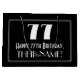 This Roaring Twenties appearance inspired vintage style birthday-themed giftbag design features a large art deco style inspired number "77", the message "Happy 77th Birthday,", a custom name, and a border pattern consisting of thin lines. The background is coloured black. A birthday themed gift bag like this might be used to wrap a gift or present being given to celebrate somebody’s seventy seventh birthday. [~Z0000496]