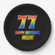 77th Birthday: Bold, Fun, Simple, Rainbow 77 Paper Plate