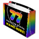77th Birthday: Colourful Rainbow # 77, Custom Name Large Gift Bag