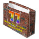 This vibrant and colourful birthday themed gift bag design, inspired by graffiti and street art, features a large number "77" with a rainbow spectrum gradient inspired pattern, along with the message "Happy 77th Birthday,", and an editable name. It also has a brick wall inspired pattern background. A birthday themed gift-bag like this might be a fun way to wrap a gift or present being given to celebrate somebody’s seventy seventh birthday. [~Z0000522]
