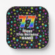 77th Birthday: Fun Stars Pattern and Rainbow “77” Paper Plate