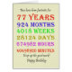 77th birthday card counting down the years, days, months, hours, and minutes. A card to give pause for thought! Leap years have been taken into account!