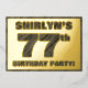 The front of this bold seventy-seventh birthday party foil invitation card features a personalized name, a large number “77th”, the message “BIRTHDAY PARTY!”, and a border, all featuring a rustic, yet elegant, faux wood grain look inspired pattern. The back features personalized details about the event, such as the date, time, place, and any other important information. Customized invitations like these might be used to invite attendees/guests to a birthday party being held to celebrate somebody’s 77th birthday. [~Z0000595]