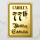 The front of this opulent seventy-seventh birthday celebration/party foil invitation/announcement card design features the message “77th Birthday Celebration” in elegant script-style text. It also has an editable name. The back features personalized details about the event, such as the date, time, venue/place, and any other relevant information. Luxurious, fancy, customizable invitations like these might be used to invite guests to a birthday party/celebration being held in celebration of somebody’s seventy-seventh birthday. [~Z0000596]