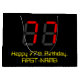 This fun and silly birthday themed gift bag design features a large number "77" having a red seven segment digital display style look, along with the message "Happy 77th Birthday," and a custom name in geeky retro style yellow text, on a black coloured background. A personalized gift bag like this might be used for wrapping gifts or presents being given in honour of somebody’s seventy seventh birthday. [~Z0000389]
