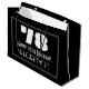 This vintage style Roaring '20s appearance inspired birthday giftbag design features a large art deco style inspired number "78", the message "Happy 78th Birthday,", a customizable name, and a border pattern consisting of thin lines. It features a black-coloured background. A gift bag like this might be used when wrapping presents being given to somebody in celebration of their 78th birthday. [~Z0000495]