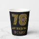 This 1920s-1930s style inspired and vintage look birthday-themed paper cup design features a large art deco inspired appearance number “78”, along with the birthday greeting message “Happy 78th Birthday,” and a customizable name. It also has a black-coloured background. 1920s-1930s style inspired birthday themed paper cups like this might be used at a party celebrating somebody’s 78th birthday. [~Z0000546]