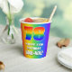 This fun and cheerful birthday themed paper cup design features a large number “78” having a colourful rainbow spectrum inspired gradient pattern. It also features the message “HAPPY 78th BIRTHDAY,”, and an editable name. The background also features an exciting multicolored rainbow spectrum inspired gradient pattern. Vibrant paper cups like this might be used when hosting a party for somebody in celebration of their 78th birthday. [~Z0000576]