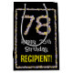 This fun, garden-inspired birthday-themed gift bag design features the message “Happy 78th Birthday,” along with a personalized recipient name. The large number “78” and the border feature flower icons. A floral birthday themed giftbag like this might be used when giving a present in celebration of somebody’s seventy-eighth birthday. [~Z0000653]