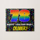 This upbeat and cheerful birthday jigsaw puzzle design features a large number “78” with a multicolored rainbow spectrum inspired gradient pattern, along with the message “HAPPY 78th BIRTHDAY,”, and a customizable recipient name. The background features a bold, colourful pattern featuring star shapes of various sizes. A joyful, customized birthday puzzle like this might be used to celebrate somebody’s seventy-eighth birthday. [~Z0000607]