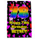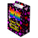 This happy and colourful birthday-themed giftbag design features a large number “78” with a rainbow spectrum gradient inspired pattern, along with the message “Happy 78th Birthday,”, and an editable name. The background features a pattern of red, purple, and pink heart shapes. A birthday themed giftbag like this might be a fun way to wrap a gift or present being given to somebody who is celebrating their 78th birthday. [~Z0000551]