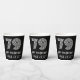 This vintage appearance and 1920s/1930s style inspired birthday-themed paper cup design features a large art deco inspired appearance number “79”, in addition to the birthday greeting message “Happy 79th Birthday,” and an editable name. The background is coloured black. Vintage appearance paper cups like this might be fun to use at a birthday party being held for somebody who is celebrating their 79th birthday. [~Z0000542]