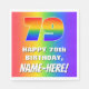 This cheerful and vibrant birthday themed paper napkin design features a large number “79” with a colourful rainbow spectrum inspired gradient pattern, along with the message “HAPPY 79th BIRTHDAY,”, and an editable recipient name. The background also features a fun multicolored rainbow spectrum inspired gradient pattern. Exciting birthday themed paper napkins like this might be used at a birthday party in celebration of somebody’s 79th birthday. [~Z0000573]