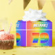 This fun and vibrant birthday wrapping paper design features a large number “79” having a colourful rainbow spectrum inspired gradient pattern. It also features the message “HAPPY 79th BIRTHDAY,”, and a custom recipient name. The background also features an exciting multicolored rainbow spectrum inspired gradient pattern. Personalized wrapping paper like this might be used when wrapping presents being given to somebody in celebration of their 79th birthday. [~Z0000572]