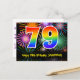 79th Birthday – Fun Fireworks Pattern + Rainbow 79 Postcard