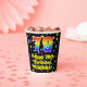 This cheerful and colourful birthday-themed paper cup design features a large number “79” with a rainbow spectrum gradient inspired pattern, along with the message “Happy 79th Birthday,”, and a custom name. The background features an exciting and colourful pattern inspired by a field of stars. Vibrant, colourful paper cups like this might be fun to use at a birthday celebration being held to celebrate somebody’s seventy ninth birthday. [~Z0000540]