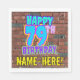 This fun birthday themed paper napkin design features the message “HAPPY 79TH BIRTHDAY,” having a vibrant, colourful, graffiti-inspired look, along with a personalized recipient name. The background features a pattern inspired by the look of a brick wall. Birthday themed paper napkins like this might be fun to use at a party being held for somebody who is celebrating their 79th birthday. [~Z0000534]