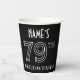 This stylish 1920s-1930s era inspired art deco look birthday paper cup design features a customizable name, and the message “79TH BIRTHDAY PARTY!”. The number “79TH” has a fancy geometric lined appearance. Paper cups like these might be used at a party held in celebration of somebody’s seventy-ninth birthday, or some other 79th event. [~Z0000658]