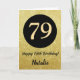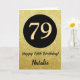 79th Happy Birthday Black and Gold Glitter Card with personalized name. For further customization, please click the "Customize it" button and use our design tool to modify this template.