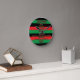 A Kwanzaa clock that states the seven principles of the holiday and their meaning in the colours of green, black and red