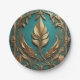 Beautiful gold leaves against a teal background cover this 7" round paper plate.