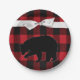 7" Round Paper Plate Red Buffalo Plaid Bear Black