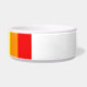I love this bowl. It's nice and heavy and feels well made. I think Zazzle could make it even better however. This large bowl is actually on the small side for a large dog. I'd love to see one size larger. Also, if you want a colored background, there will be a rather thick strip of white on the top and the bottom. I wish I could have the entire face of the bowl printed in a color. The printing is crisp and clear and does a good job of showing off my Create With Photos running Portuguese Water Dog design.