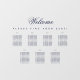 All text is navy blue. The word Welcome is written in an elegant calligraphic script, the rest in caps. The tables are on 2 rows. Above them and under the word Welcome, there is the message "Please find your seat!".