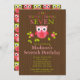 Commencez votre septième fête d'anniversaire outre de la droite avec nos invitations roses et rouges adorables de partie d'anniversaire de enfant de hibou. Perfectionnez l'invitation pour votre 7ème célébration de fête d'anniversaire ! Nos invitations de hibou de bonbon comporte un petit hibou mignon se reposant sur une branche d'arbre verte de feuille avec des fleurs et est placées sur un arrière - plan brun élégant. Notre invitation de fête d'anniversaire de filles de hibou comporte un arrière - plan unique de motif de hibou. Visitez notre magasin pour assortir vous remercient des cartes de note, autocollants d'anniversaire, merci des autocollants et des timbres-poste. © petit Tatti