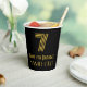 This vintage style and Roaring Twenties inspired birthday themed paper cup design features a large art deco inspired look number “7”, in addition to the birthday greeting message “Happy 7th Birthday,” and a personalized name. It also has a black-coloured background. Roaring Twenties inspired paper cups like this might be fun to use at a birthday party in honour of somebody’s seventh birthday. [~Z0000546]