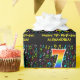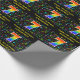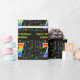This fun, vibrant, and colourful birthday-themed wrapping paper design features a large number "7" having a rainbow spectrum gradient inspired pattern. It also features the message "Happy 7th Birthday,", and a personalized name. Part of the background has a colourful music notes and symbols pattern. Wrapping paper like this might be used when wrapping gifts being given to somebody in celebration of their 7th birthday. [~Z0000422]