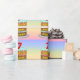 This cheerful and colourful birthday-themed wrapping paper design features a cartoon-style depiction of a three-tier birthday cake having a number-shaped candle on top showing the age “7“, along with the message “HAPPY 7TH BIRTHDAY,”, and a custom recipient name. The background has a multi-colour pastel rainbow spectrum inspired gradient pattern. Wrapping paper like this might be a fun way of wrapping a birthday present or gift being given to somebody who is celebrating their 7th birthday. [~Z0000622]