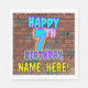 This fun birthday-themed paper napkin design features the message “HAPPY 7TH BIRTHDAY,” having a colourful, vibrant, graffiti-inspired appearance, plus a personalized recipient name. The background features a pattern inspired by the look of a brick wall. Birthday themed paper napkins like this might be a fun way to celebrate somebody’s 7th birthday. [~Z0000534]