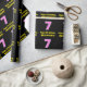 This joyful and fun birthday themed wrapping paper design features a large number "7" having a dark pink and light pink stripes pattern containing heart shapes. It also features the birthday greeting message "Happy 7th Birthday,", and an editable recipient name. Wrapping paper like this might be used when giving a gift or present in honour of somebody’s 7th birthday. [~Z0000435]