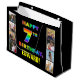 This eye-catching and fun birthday-themed gift bag design features the message “HAPPY 7TH BIRTHDAY,“ with the text having a vibrant multicolored rainbow spectrum inspired gradient pattern, along with a customizable recipient name. To the left and the right of the rainbow-patterned message on the front are some photos that can be personalized, perhaps with photos of the recipient, the recipient’s family and friends, and/or the sender(s) of the gift. A giftbag like this might be used when wrapping presents being given to somebody in celebration of their seventh birthday. (Photography © Storytree Studios, Stanford, CA.) [~Z0000668]